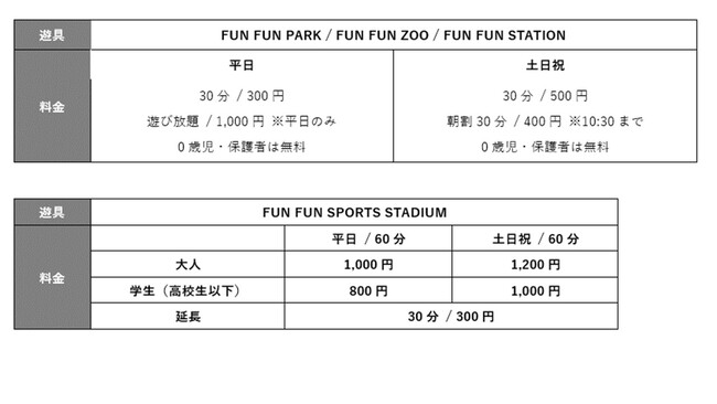 FUN FUN STATION / FUN FUN ZOO / FUN FUN PARK /FUN FUN SPORTS STADIUM / FUN FUN CENTER など