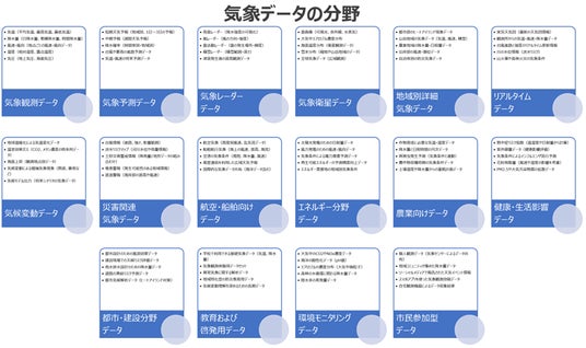 これらの分野のデータは、様々な機関やプロジェクトから提供されており、産業、学術、防災、日常生活など多岐にわたる用途に活用されています。