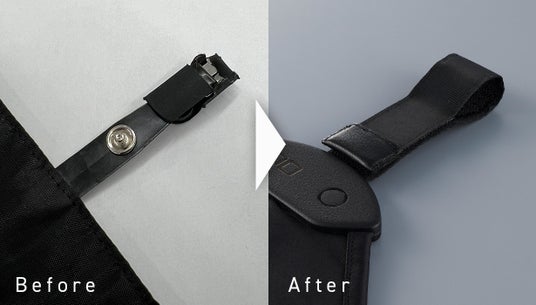 4.クリップが外れやすい、耐久性に不安がある→面ファスナーに変更することで破損リスクを低減、耐久性を大幅改善!