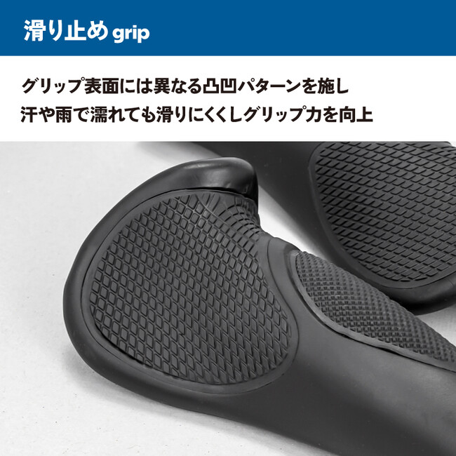グリップ表面の凸凹が滑り止めになり汗や雨に濡れてもグリップ力を向上させます。