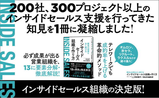 ビジネス書や実用書を中心に出版する株式会社クロスメディア・パブリッシング(本社:東京都渋谷区、代表取締役社長:小早川幸一郎)は、2023年9月29日に書籍『最高の成果を出し続ける インサイドセールス組織の作り方』を刊行します。本書はコロナ禍以降で重要性を増している、「非対面の営業手法」インサイドセールスの組織づくりについて解説しています。著者はインサイドセールスの支援を行うSmartCampCOOの阿部慎平氏。インサイドセールスの基礎知識から、実際の組織作りを13の要素に分解し、読者の一番適した手法をレベル別に解説しています。