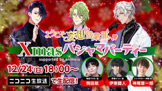 2023年12月24日(日)に「ようこそ妄想営業部へ(ハート)Xmasパジャマパーティー supported by animelo」と題し、ニコニコ生配信で無料生配信を行います。