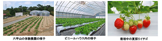 同体験農園では、六甲山の冷涼な気候を利用して、関西では珍しい「夏採りイチゴ」(品種:夏実)2,000株を栽培しており、7月21日(火)から「イチゴの摘み取り体験」及び摘み取った果実を使った「イチゴのピザ作り体験」を実施します。