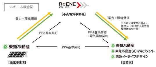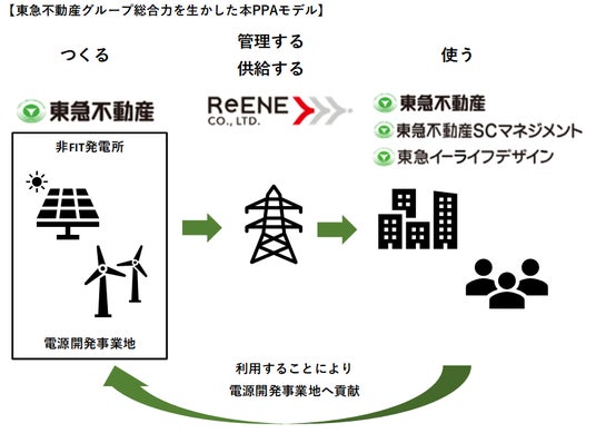 東急不動産株式会社(本社:東京都渋谷区、代表取締役社長:星野 浩明、以下「東急不動産」)、東急不動産SCマネジメント株式会社(本社:東京都渋谷区、代表取締役社長 大久保 次朗、以下「東急不動産SCマネジメント」)、株式会社東急イーライフデザイン(本社:東京都渋谷区、代表取締役社長 大柴 信吾、以下「東急イーライフデザイン」)は、保有・運営管理するオフィスビル、商業施設、シニア住宅等において、株式会社リエネ(本社:東京都渋谷区、代表取締役:根津 登志之、小売電気事業者登録番号A0017、以下「リエネ」)を小売電気事業者としたオフサイト型コーポレートPPA(以下「オフサイトPPA」)※1の導入の拡大を決定いたしましたのでお知らせいたします。