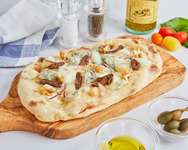 ドライいちじくとゴルゴンゾーラを使用。ゴルゴンゾーラの濃厚な味わいに、ドライいちじくの熟成した甘みが調和の取れた美味しさを生み出しています。お召し上がりの直前に東京都青梅市産のはちみつをかけてお召し上がりください。