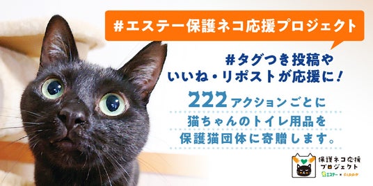 エステー株式会社は、保護猫や保護猫団体を支援する「保護ネコ応援プロジェクト」の2年目をスタートさせ、SNSでのアクション数に応じて猫用トイレ用品を保護猫団体に寄贈するキャンペーンを、“National Pet Day”である2024年4月11日(木)から5月13日(月)の期間で実施します。