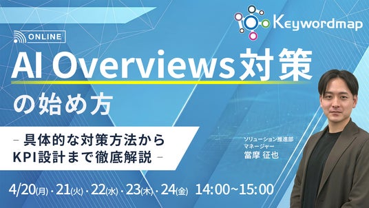 株式会社CINC(本社:東京都港区、代表取締役社長:石松友典、以下CINC)は、2026年4月20日(月)~24日(金)にオンラインセミナー『AI Overviews対策の始め方 - 具体的な対策方法からKPI設計まで徹底解説 -』を開催いたします。