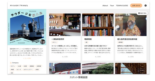 すでに、過去に「NICHER TRAVEL」でツアーを実施した豊岡市(兵庫県)、松阪市(三重県)、福山市(広島県)、屋久島町(鹿児島県)での「TOWNGUIDE By NICHER TRAVEL」導入が決まっており、各観光ガイドは「NICHER TRAVEL」で閲覧できます。