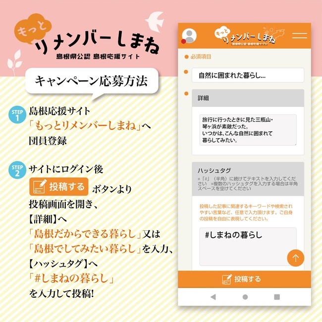 【リメしまPost】にあなたが思う「島根だからできる暮らし」または「島根でしてみたい暮らし」を「#しまねの暮らし」のハッシュタグをつけて投稿!