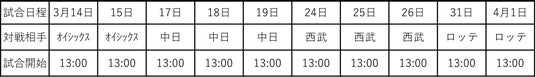 ▶ 開幕シリーズ(対象日:3月14日・15日)