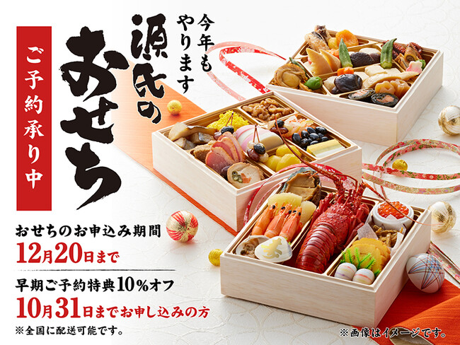株式会社物語コーポレーション(本社:愛知県豊橋市/代表取締役社長:加藤 央之)が展開する『しゃぶとかに 源氏総本店 向山店』『しゃぶとかに 源氏総本店 南越谷店』は、2022年12月20日(火)まで、「源氏 伊勢海老おせち-三段重-」(送料無料)の予約をwebもしくは店頭、お電話にて承ります。