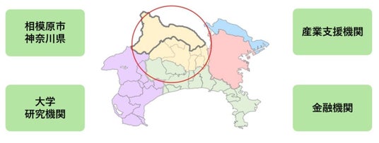 本事業は橋本駅を中心とし、相模原市だけでなく県央や多摩地域といった広域的なエリア内の企業・大学・研究機関・産業支援機関などの多様なプレイヤーが参画するネットワークを形成し、それぞれの有するアセットや支援策を活用することで、スタートアップやベンチャー企業の様々な成長ニーズに応えられる体制を構築します。