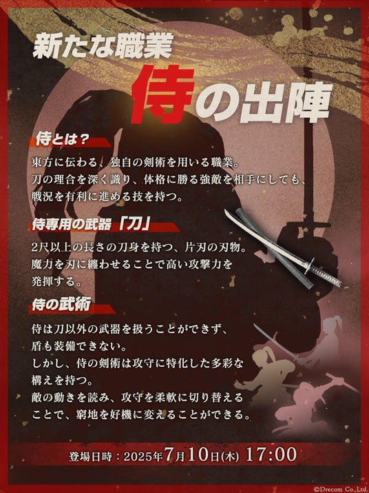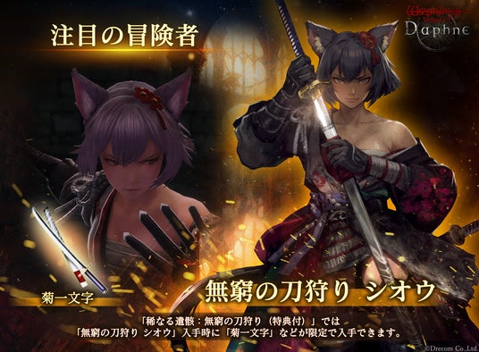 株式会社ドリコム(本社:東京都品川区、代表取締役社長:内藤裕紀、以下ドリコム)は、「Wizardry(ウィザードリィ)」シリーズ最新作の3DダンジョンRPG『Wizardry Variants Daphne(ウィザードリィ ヴァリアンツ ダフネ)』において、新たな職業「侍」や、伝説の冒険者「無窮の刀狩り シオウ」の登場、特別な支給品など各種キャンペーンの開催を2025年7月10日(木)より実施することをお知らせいたします。