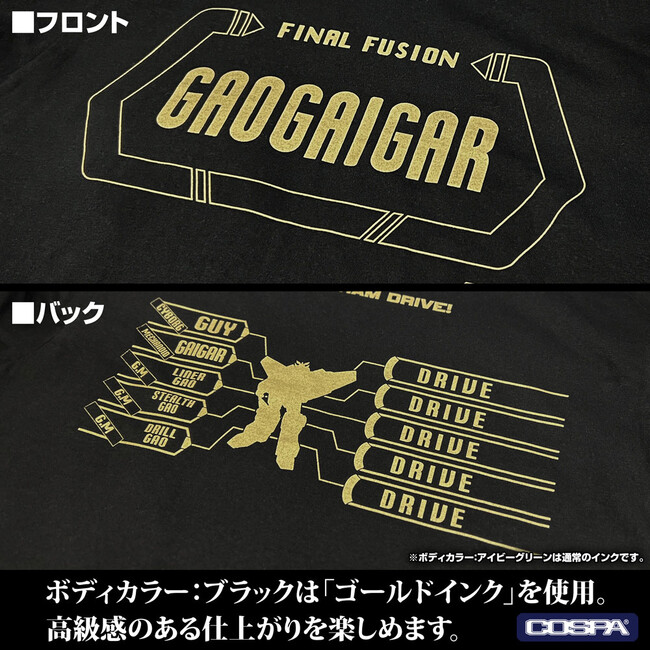 最後のファイナルフュージョン Tシャツは、主人公が勇者王であるスーパーメカノイド「ガオガイガー」に変身する、ファイナルフュージョンシーンを盛り込んだデザインTシャツ。ファンとTシャツがドッキングするイメージでデザインされた一着となっている。