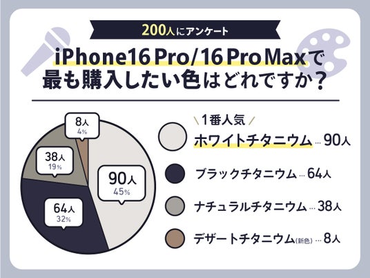 発表前のおよその予想通り、最も人気だったのがホワイトチタニウムで全体の45%でした。2番人気は定番カラーのブラックチタニウムで32%でした。