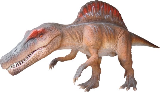 スピノサウルスは背の部分にある、大きな突起が最大の特徴です。主に水中で生活していたと推測されており、魚を食べることが多かったそう。恐竜の専門家の間では泳げたかどうかが論争になっており、詳しい生態は未だ謎に包まれたままです。