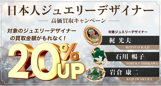 株式会社ドリームファクトリー(本社:大阪市北区 代表取締役:井上 馨)が展開するゴールドプラザでは貴金属・ブランド品・ 宝石を業界最高水準の安心買取りで累計56万人のお客様にご利用いただいております。店舗での買取をはじめLINE査定、宅配買取など、各種お客様に合わせたお買取り方法にも対応しており、また情勢の動きなども敏感に察知し情報を発信しております。そんなゴールドプラザでは、3月10日より日本作家ジュエラー!買取金額20%アップキャンペーン!!を開催します。