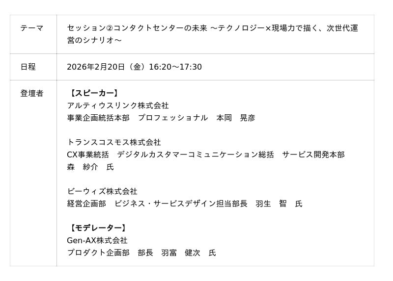 アルティウスリンク株式会社(所在地:東京都渋谷区、代表取締役社長:那谷 雅敏、以下 アルティウスリンク)は、2026年2月20日(金)一般社団法人日本コンタクトセンター協会が主催する「CCAJ コンタクトセンター・セミナー2026」のセッションに登壇します。