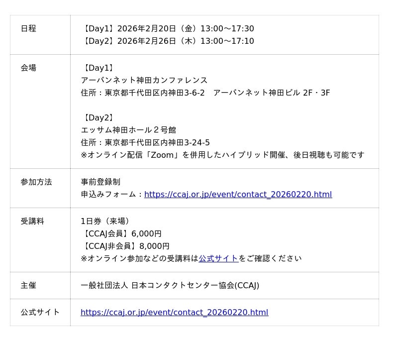 CCAJコンタクトセンター・セミナー2026 概要