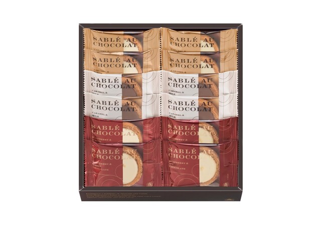 サクサク食感の厚焼きサブレに、とろけるソースが入ったなめらかなチョコレートを合わせました。