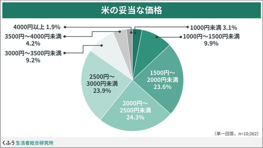 米は「5kgあたり2000円~2500円未満」が妥当と回答した人が最多