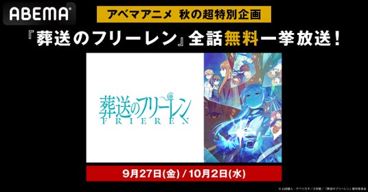 新しい未来のテレビ「ABEMA」は、アベマアニメ秋の特別企画として、大人気アニメ『葬送のフリーレン』を、2024年9月27日(金)より2週連続で無料一挙放送いたします。