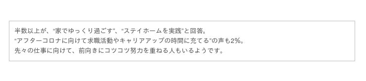 <GWにしたいこと・しようと思っていることについての自由記述欄回答>