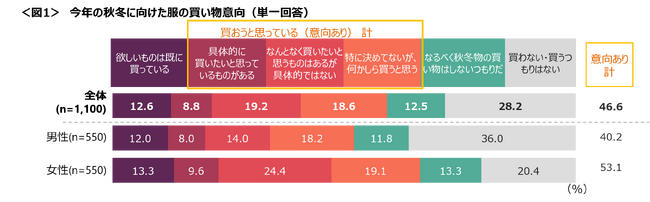 秋冬に向けた服の買い物について、「買おうと思っている」人は46.6%。<図1>