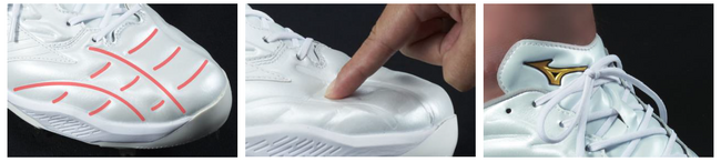 大事な大会を控えながら日々の練習に取り組む高校生に向けて、少しでもプレーの負担を軽減できるようなスパイクを提供しようと、実際にプロ野球選手70人以上に試してもらいながら修正を重ねて完成しました。
