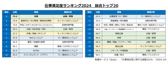 転職サービスdoda「仕事満足度ランキング2024」<https://doda.jp/guide/manzokudo/>