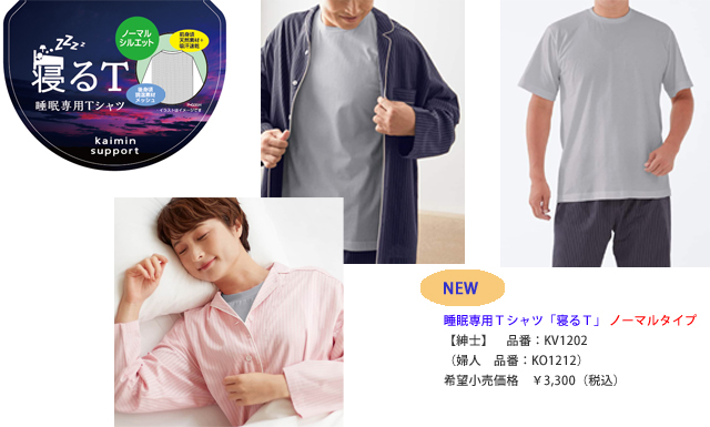 ノーマルタイプも加わったラインアップで、寝る時Tシャツ派の方はもちろんパジャマ・ルームウェア派の方の眠りの環境もサポートします。