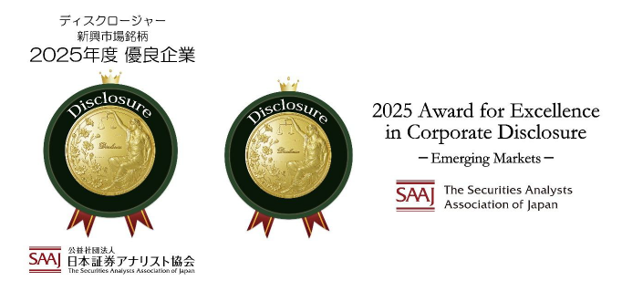 株式会社ティーケーピー(本社:東京都新宿区、代表取締役社長:河野貴輝、以下 TKP)は、このたび、公益社団法人日本証券アナリスト協会が実施する第31回「証券アナリストによるディスクロージャー優良企業選定」(2025年度)の新興市場銘柄部門で受賞しました。