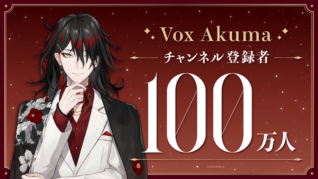 ANYCOLOR株式会社(本社:東京都港区 代表取締役:田角陸、以下「当社」)が運営するVTuber / バーチャルライバーグループ「NIJISANJI EN」は、所属ライバー「Vox Akuma(ヴォックス・アクマ)」のYouTubeチャンネル登録者数100万人突破をお知らせいたします。