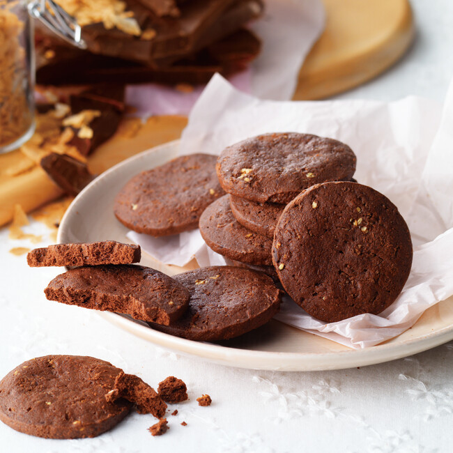 クッキーとも、チョコレートともちょっと違うショコラキュイは、「焼きチョコレート」。 香ばしく焼き上げられたショコラキュイの中にはフィアンティーヌ、キャンディングしたアーモンドクランチが入っていて楽しい食感に。 ほんのり洋酒を効かせたカカオの豊かな香りとともに、さくさく、ほろほろとおいしさが広がっていきます。