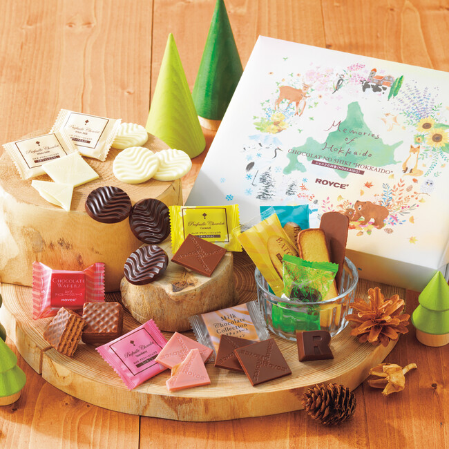色や素材から、四季それぞれをイメージできるロイズのチョコレートをセレクトした詰め合わせです。パッケージには、北海道に住む動物や、北海道の四季折々の植物が美しく描かれていて、北海道のお土産にもおすすめです。自然豊かな北の大地に想いを馳せながら、ロイズのチョコレートをお楽しみください。
