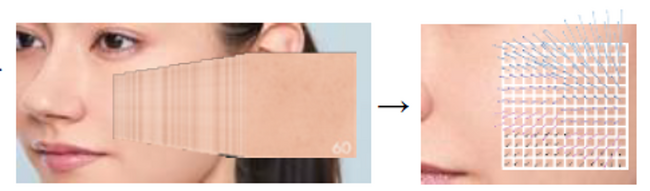1秒間の動画を60枚に分解→1枚ごとに表情の動きの速さや方向性などの特徴量を抽出