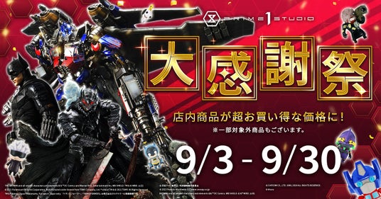 今回、初の試みとしまして、そんなプライム1スタジオファンの皆様に感謝を込めたスペシャルなイベントを9月3日(水)から開催いたします!
