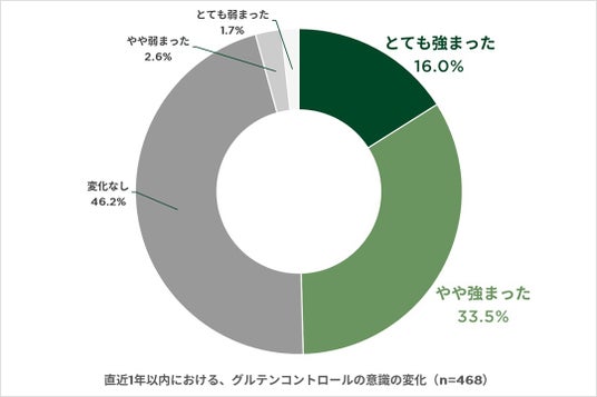 2.約半数(49.5%)の女性が、直近1年間でのグルテンコントロールの意識が高まっており、