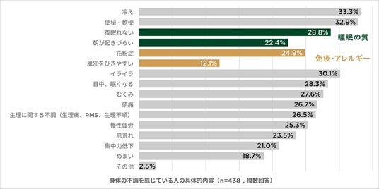また、「大きな病気以外で、普段感じている身体の不調があるか」と聞いたところ、87.6%が不調を感じている実態があった。そのような日常生活のコンディションに対する改善に向けて、グルテンコントロールの食生活に注目が集まっていることが考えられる。