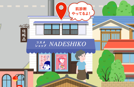 『撫子タウン』内にある様々なスポットでは毛穴撫子の製品についての詳しい情報をご覧いただくことができます。