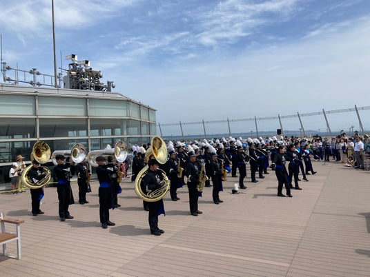 青空と飛行機を背景に、マーチングバンドがスカイデッキをパレード!耳だけでなく目でも楽しめる音楽イベントを開催します。