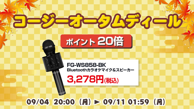楽天市場「Show !t」は家族みんなで楽しめるカラオケマイクをご購入でポイント20倍プレゼントを実施し、9月4日(月)20:00~9月11日(月)01:59まで開催される、全ショップ対象ポイント最大44.5倍の楽天スーパーセールに参加します。楽天「Show !t」のショップ内全商品ポイント10倍になるこの機会に、お得にポイントをたくさん貯めましょう。