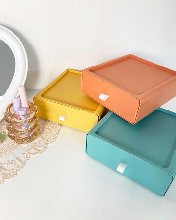 重ねて使える便利な収納ボックスが3色展開で登場します。 縦21×横20×高さ7cmの大容量でコスメ収納やデスク周辺の収納にピッタリのサイズ感です。敢えて色違いで重ねて使ってもオシャレなカラー展開で用意しています。
