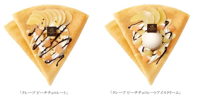 チョコレートの味わいに上品なピーチの香りがマッチした期間限定クレープ、「クレープ ピーチチョコレート」と、アイスもついた「クレープ ピーチチョコレートアイスクリーム」を発売します。