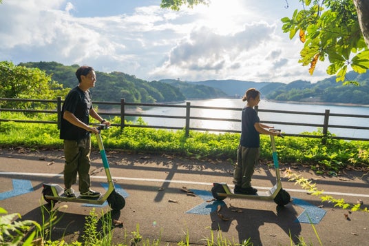 その一環として、北山の景色や自然を楽しみながら快適にスポットを巡るための新たなコンテンツとして、令和7年春から電動キックボードを試験的に導入しています。