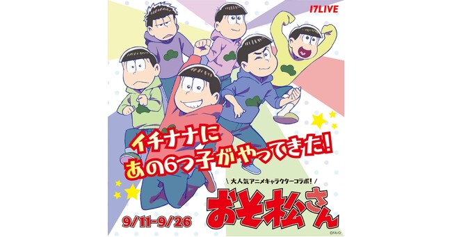 17LIVE株式会社(東京都港区、代表取締役:アレックス・レン、URL:https://jp.17.live/)が運営する日本最大級のライブ配信アプリ「17LIVE(イチナナ)」は、今なお幅広い世代に人気を誇る、赤塚不二夫氏の名作ギャグマンガ「おそ松くん」が原作のアニメ作品「おそ松さん」と、初のコラボとなるオーディションイベント『大人気アニメキャラクターコラボ おそ松さん~イチナナにあの6つ子がやってきた!~』を、2023年9月11日(月)より開催することが決定しましたので、お知らせいたします。