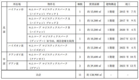 同所に新設する5棟は2026年冬頃の竣工を目指してまいります。竣工すればセムコープ インフラ サービス社を通じて運営する物流倉庫は、ベトナム北部の11棟(ハイフォン市内の10棟※2及びハイズオン省内の1棟)と中部の6棟(クアンガイ省及びゲアン省内の各3棟)を合わせて、計17棟・総賃貸面積約24万平方メートルとなります。