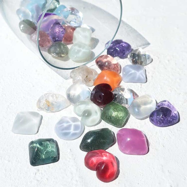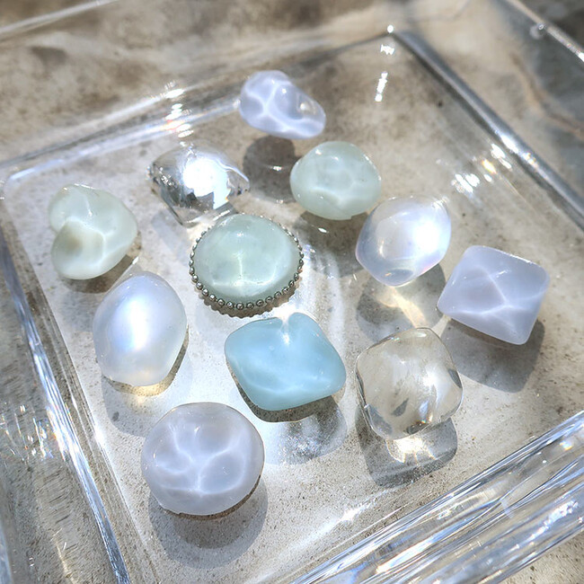 でこぼことした表面に光が当たると、ゆらゆら揺らめく水面のように輝くパーツを作ることができる「変形カボションモチーフ6型」