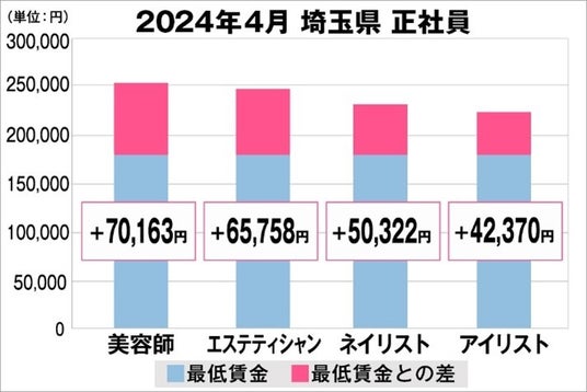 埼玉県の美容業界における採用時給料に関する調査結果 (正社員)2024年4月美プロ調べ