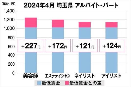 埼玉県の美容業界における採用時給料に関する調査結果 (アルバイト・パート)2024年4月美プロ調べ